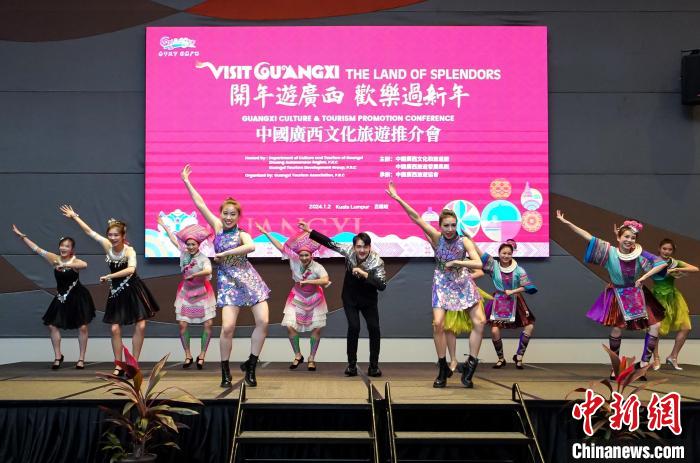 中新網(wǎng)吉隆坡1月3日電 (記者 陳悅)“開年游廣西 歡樂過新年”中國廣西文化旅游推介會1月2日在馬來西亞吉隆坡舉行。推介會上,一段如今正紅火的“廣西科目三”舞蹈讓氣氛推向高潮。