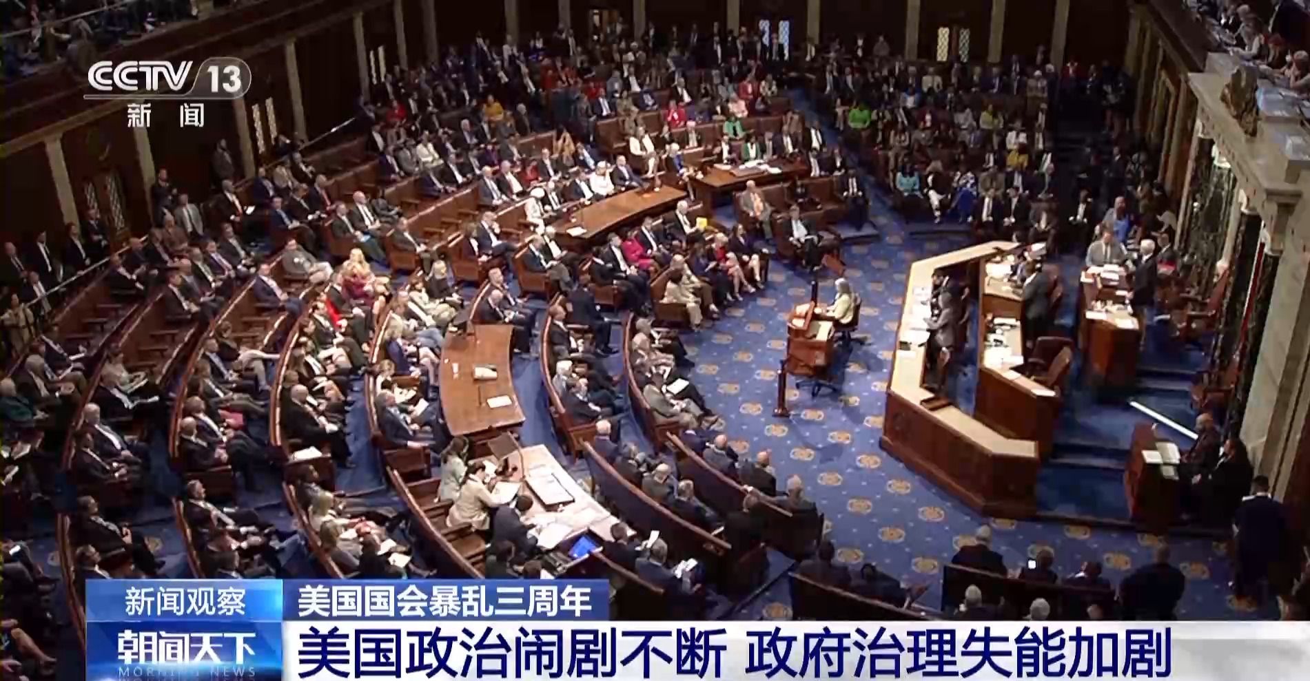 如今,美國(guó)國(guó)會(huì)暴亂事件已經(jīng)過(guò)去三年,國(guó)會(huì)大廈這一“美國(guó)政治的象征”成了美國(guó)民主、共和兩黨相互攻訐、上演一出出政治鬧劇的舞臺(tái)。在美國(guó)政治極化、黨爭(zhēng)加劇的環(huán)境下,美國(guó)經(jīng)濟(jì)社會(huì)議程遲滯,政府治理失能現(xiàn)象惡化,美國(guó)社會(huì)沉疴難愈。