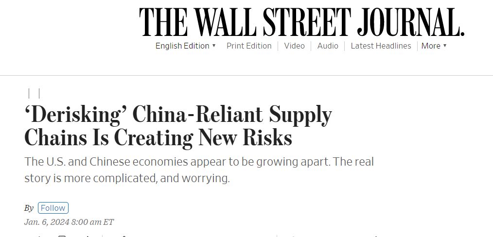 中國日報網(wǎng)1月8日電 美國《華爾街日報》網(wǎng)站報道稱,最新研究揭示了美西方針對中國供應鏈實施“去風險化”政策的實際效果。初步結論令人擔憂:旨在打造彈性供應鏈的相關措施,可能是虛幻的。結果將導致全球供應鏈變得更為復雜,反而會產(chǎn)生新的風險。