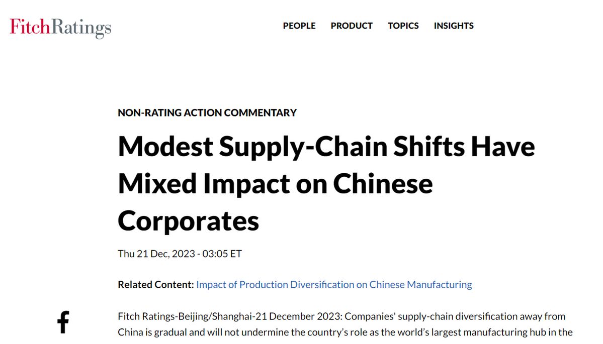 《華爾街日報》的觀察與惠譽評級公司最近的一份報告相呼應。該報告稱,在貿(mào)易壁壘和地緣政治緊張局勢加劇背景下,全球性企業(yè)和中資企業(yè)都在推進供應鏈多元化。不過,產(chǎn)能外遷規(guī)模仍然有限,且集中在低技能的組裝和量產(chǎn)領域,如紡織、服裝和鞋類。