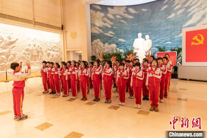 隨后,天津市川府里小學(xué)學(xué)生為大家?guī)?lái)精彩朗誦《為中華之崛起而讀書》,再現(xiàn)了周恩來(lái)青年時(shí)代在奉天(今沈陽(yáng))東關(guān)模范學(xué)校上學(xué)時(shí)立下的宏偉志向。伴隨著《紅星閃閃》的嘹亮歌曲,新時(shí)代少年立下了“故今日之責(zé)任,不在他人,而全在我少年。少年智則國(guó)智,少年富則國(guó)富,少年強(qiáng)則國(guó)強(qiáng).......”的鏗鏘誓言。