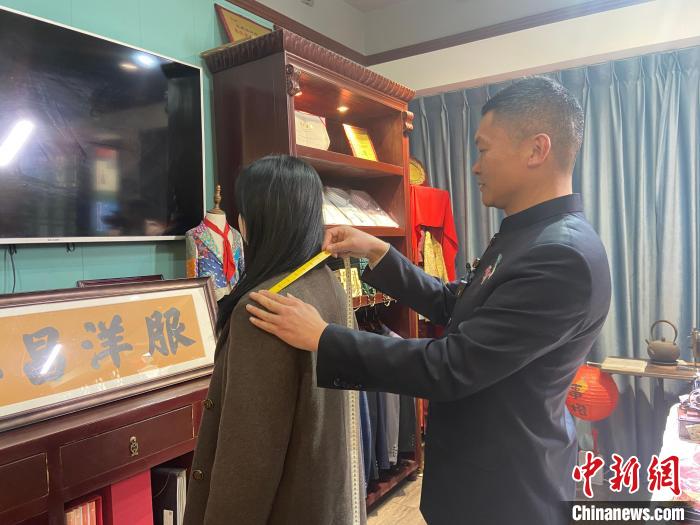 中新網寧波1月11日電(記者 林波)“特意打‘飛的’來浙江寧波找‘紅幫裁縫技藝’傳承人定做‘寶總’同款西裝?!苯眨瑏碜陨綎|青島的“西服愛好者”孫倪來到浙江省寧波市奉化區(qū)溪口鎮(zhèn)的王興昌洋服店,向該店“掌門人”王小方定做了一套西服。
