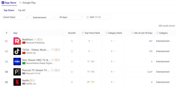 這些出海短劇雖“土”,卻在2023年國產(chǎn)應(yīng)用軟件賽道闖出一片天。據(jù)AppGrowing統(tǒng)計(jì),ReelShort已經(jīng)成為全球短劇市場的頂級產(chǎn)品,其母公司股價(jià)持續(xù)上漲。