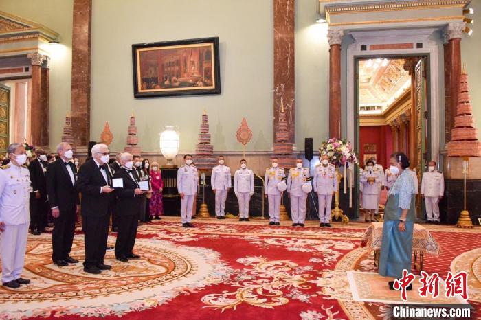 中新網(wǎng)曼谷1月26日電(李映民 陳映玲)當(dāng)?shù)貢r間24日,泰國詩琳通公主在曼谷大皇宮主持了2023年瑪希隆王子獎頒獎典禮。來自美國加州大學(xué)圣地亞哥分校醫(yī)學(xué)院的拿破侖·費(fèi)拉拉和來自美國科羅拉多州立大學(xué)醫(yī)學(xué)院的巴里·魯馬克獲得2023年瑪希隆王子獎。