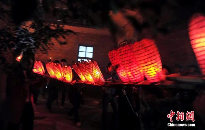 村民舞起由400余條板凳燈連接而成的近800米長的梅燭龍燈繞村游走。陳斌 攝