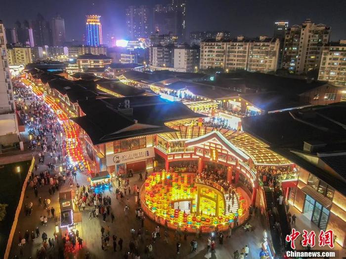 圖為無人機航拍古色古香年味十足的繩金塔歷史文化街區(qū),燈火璀璨,人潮涌動。 劉力鑫 攝