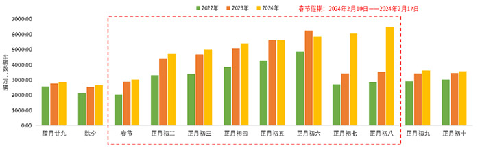 報(bào)告指出,2024年春節(jié)假期從2月10日(正月初一)到2月17日(正月初八),共計(jì)8天,7座以下(含7座)小型客車免費(fèi)通行時(shí)間為2月9日0時(shí)至2月17日24時(shí),共計(jì)9天。