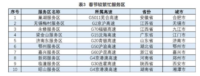 報(bào)告還公布了高速公路預(yù)計(jì)易發(fā)生擁堵緩行的路段、收費(fèi)站以及較繁忙的服務(wù)區(qū)。