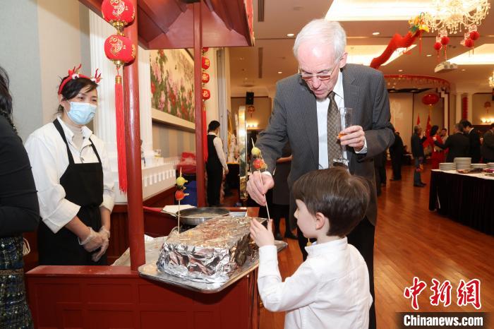 當?shù)貢r間2月1日晚,加拿大首都渥太華,中國駐加拿大大使館舉行2024年春節(jié)招待會。圖為現(xiàn)場制作的中國風味小吃冰糖葫蘆吸引來賓品嘗。中新網記者 余瑞冬 攝