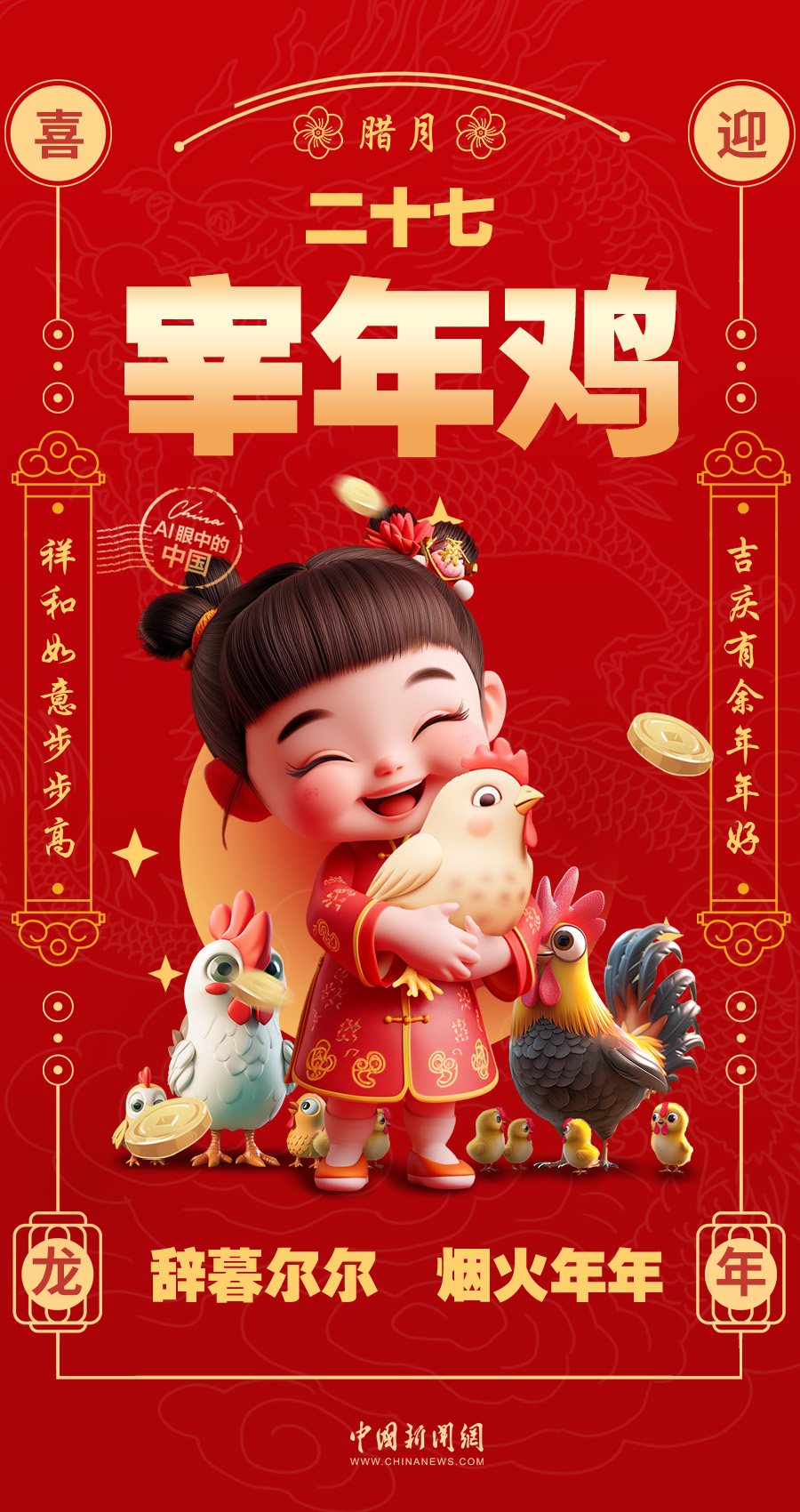 【龍騰九州 福暖四季】AI眼中的中國|臘月二十七,宰年雞