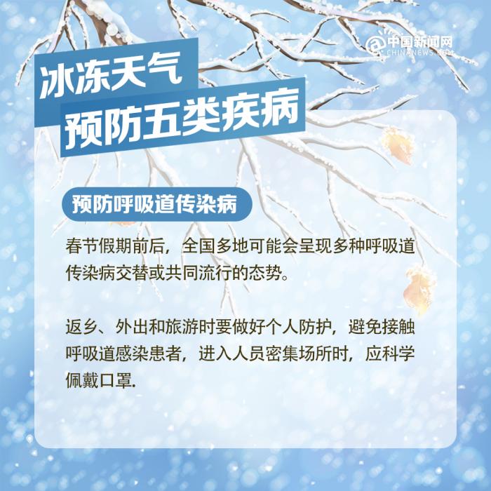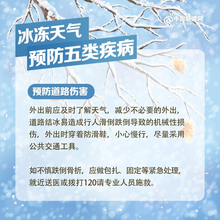 中新網(wǎng)北京2月7日電 近期我國中東部地區(qū)出現(xiàn)大范圍持續(xù)性低溫雨雪冰凍天氣過程,局部地區(qū)累計降雪量將接近或超過歷史同期,雨雪覆蓋范圍廣、持續(xù)時間長、凍雨范圍大,雨雪冰凍災(zāi)害風(fēng)險高,恰逢春節(jié)人員大規(guī)模流動,以下健康防護要點請查收。