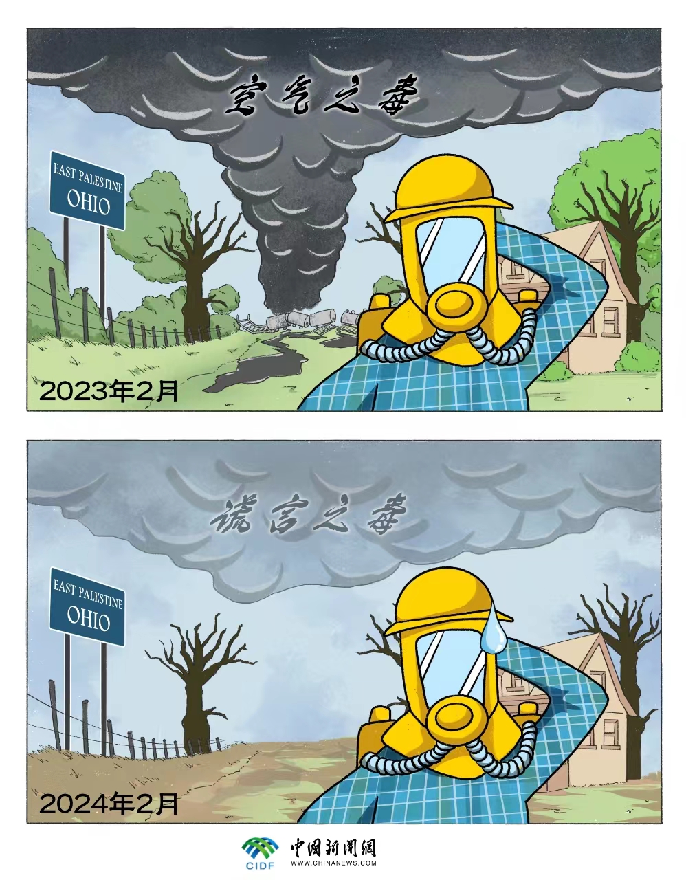 這些都不斷凸顯美國政府在應(yīng)對災(zāi)難事件的不作為。有關(guān)方面提出的旨在強化鐵路貨運安全的法案因為兩黨意見分歧而被擱置在國會;聯(lián)邦政府至今未宣布當(dāng)?shù)爻霈F(xiàn)“聯(lián)邦災(zāi)難”;事故一周年,承運方賠償行將到期......當(dāng)前,美國國內(nèi)大選造勢如火如荼,小鎮(zhèn)居民“健康自由”卻難以得到保障。毒氣污染和“政治謊言”疊加,下一個一周年,東巴勒斯坦鎮(zhèn)是否會成為美國的“無主之地”?
