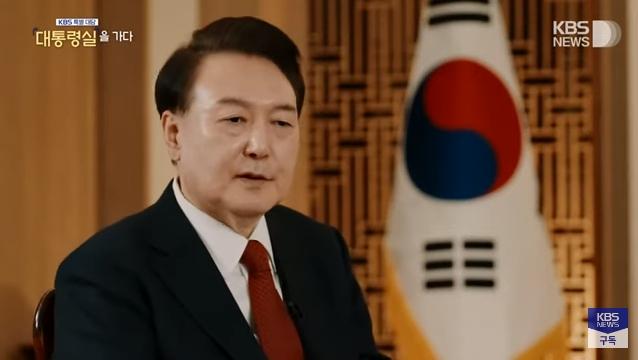 2月7日晚,韓國KBS電視臺第一頻道播出獨家訪談節(jié)目《特別訪談:走進總統(tǒng)府》,韓國總統(tǒng)尹錫悅回應(yīng)其夫人金建希收受名牌皮包的爭議。圖片來源:KBS視頻截圖