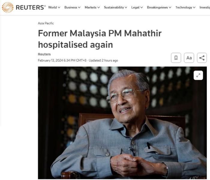 據(jù)此前報(bào)道,馬哈蒂爾曾于1989年因心臟病發(fā)作,在國家心臟中心接受心臟搭橋手術(shù),并在2007年于該中心接受第二次手術(shù)。