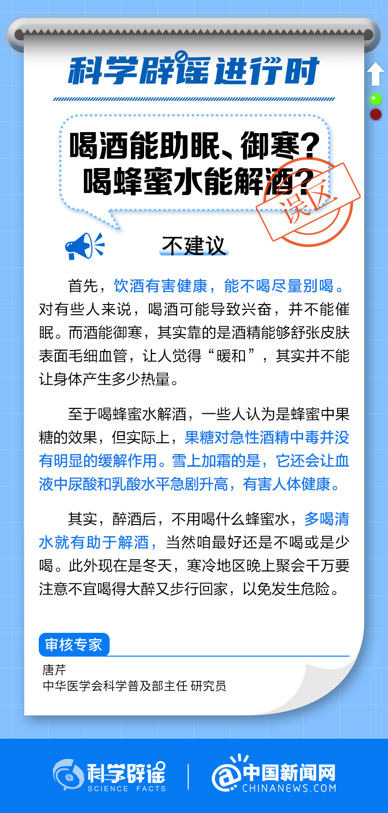 中新網(wǎng)2月13日電 飲酒有害健康,能不喝盡量別喝。對有些人來說,喝酒可能導(dǎo)致興奮,并不能催眠。而酒能御寒,靠的是酒精能夠舒張皮膚表面毛細血管,讓人覺得“暖和”,其實并不能讓身體產(chǎn)生多少熱量。至于喝蜂蜜水解酒,一些人認為是蜂蜜中果糖的效果,但實際上,果糖對急性酒精中毒并沒有明顯的緩解作用。它還會讓血液中尿酸和乳酸水平急劇升高,有害人體健康。(來源:@科學(xué)辟謠 中國新聞網(wǎng)微博 )
