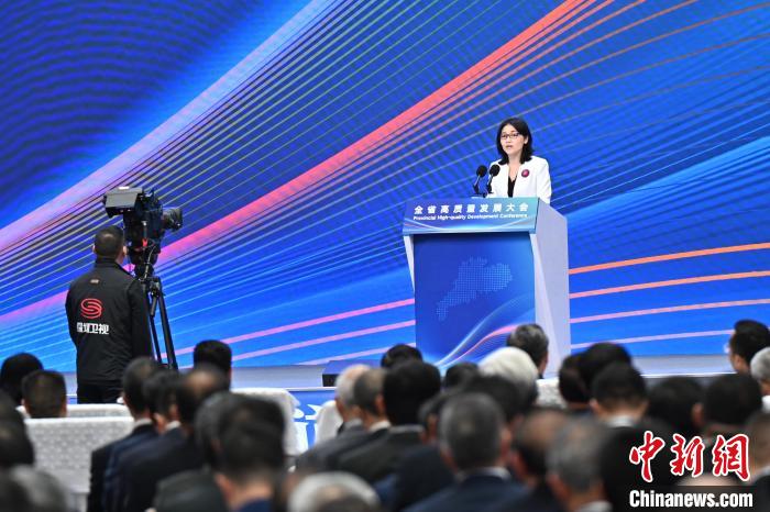 2月18日,中國(guó)科學(xué)院院士、深圳灣實(shí)驗(yàn)室主任顏寧在廣東深圳舉行的全省高質(zhì)量發(fā)展大會(huì)上發(fā)言。陳驥旻攝
