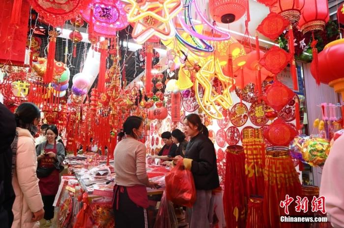 圖為民眾選購過年飾品。 中新社記者 劉文華 攝