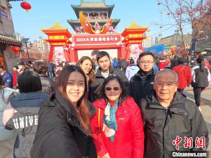 春節(jié)假期,施季萱一家到天津觀賞鼓樓迎春燈會(huì)。(受訪者供圖)