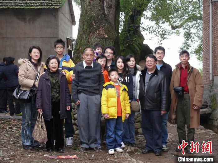 2007年春節(jié)期間,陳瞿舟全家回浙江衢州祭祖,一家人在全旺鎮(zhèn)老宅外合影。(受訪者供圖)
