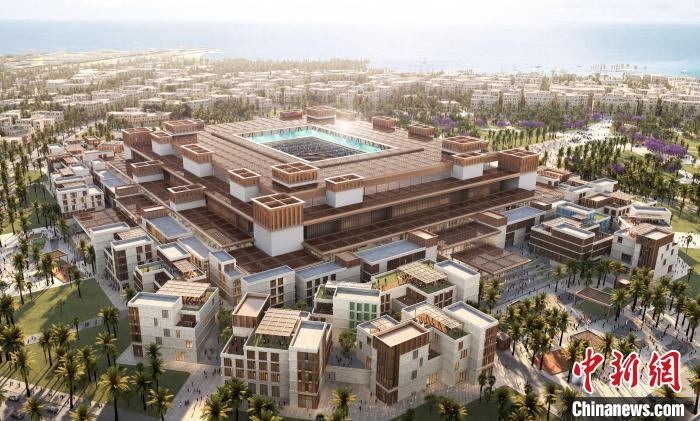 圖為2034年沙特世界杯體育場(chǎng)及周邊體育村項(xiàng)目效果圖。(中國(guó)鐵建國(guó)際集團(tuán) 供圖)