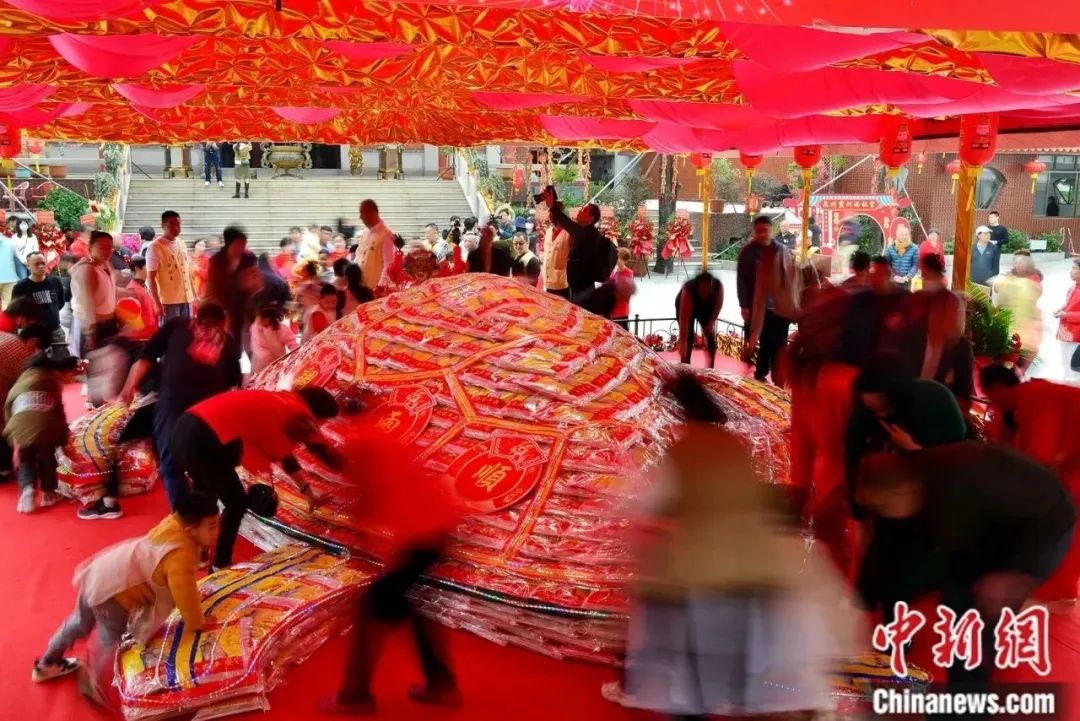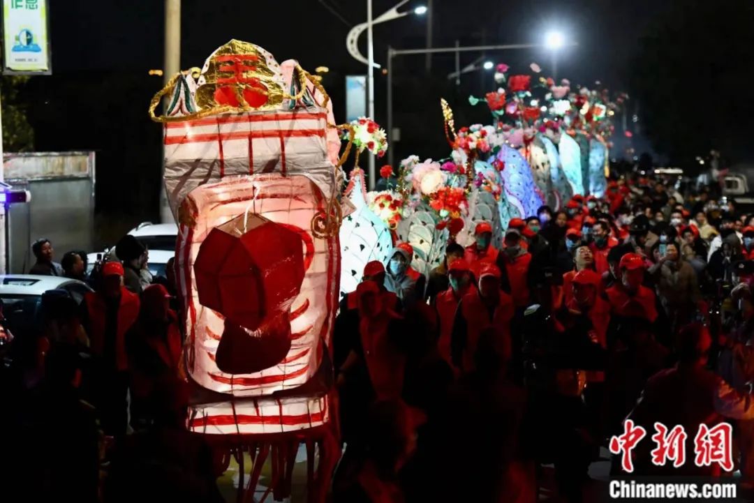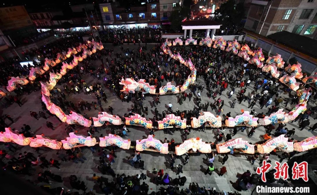 連城林坊游龍,村民們抬著色彩繽紛的大龍環(huán)著村道游走鬧新春。游大龍活動(dòng)是林坊林氏家族傳統(tǒng)文化藝術(shù)活動(dòng)的遺產(chǎn),有500多年歷史,意在祈求風(fēng)調(diào)雨順、國泰民安。中新社記者 王東明 攝