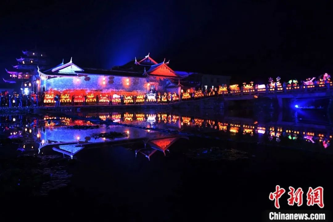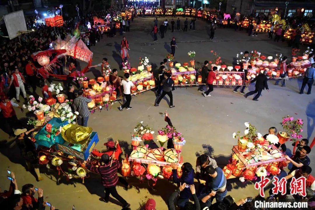 “客家祖地”福建省連城縣芷溪村舉行游花燈活動(dòng),吸引民眾體驗(yàn)民俗文化。圖為游花燈現(xiàn)場(chǎng)。中新社記者 張斌 攝