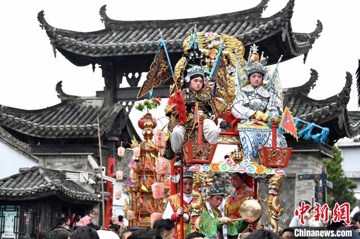 中新網(wǎng)寧波2月23日電 (方堃 蔣攀 駱佳明 葛鵬超)2月23日正值農(nóng)歷正月十四,浙江省寧波市寧??h前童鎮(zhèn)鼓亭館廣場(chǎng)上,人聲鼎沸,熱鬧非凡,一場(chǎng)延續(xù)百年的民俗活動(dòng)“前童元宵行會(huì)”在這里舉行。