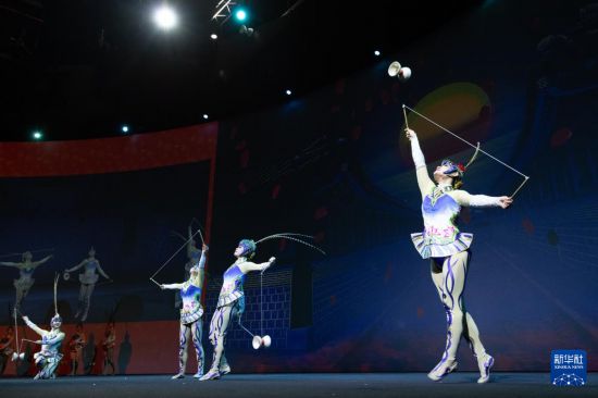2月24日,演員在荷蘭海牙舉行的“四海同春”慰僑訪演活動(dòng)上表演雜技。新華社記者 孟鼎博 攝