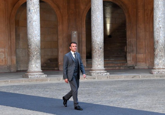 2023年10月5日,在西班牙格拉納達(dá),前來(lái)參加第三屆歐洲政治共同體領(lǐng)導(dǎo)人會(huì)議的法國(guó)總統(tǒng)馬克龍抵達(dá)阿爾罕布拉宮。新華社記者連漪攝