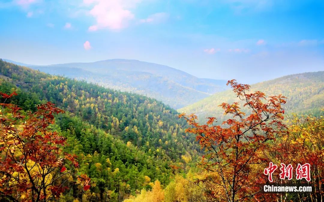秋天,山嶺間層嶺盡染,似打翻調(diào)色盤(pán)。 內(nèi)蒙古森工集團(tuán)供圖