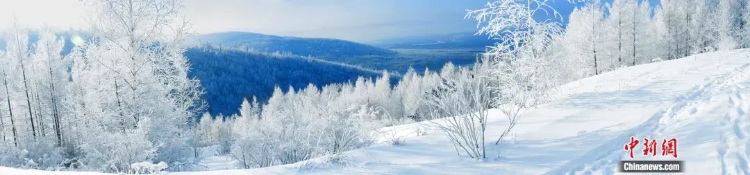 內(nèi)蒙古大興安嶺林區(qū)的霧凇晶瑩剔透,漫山遍野。 呼倫貝爾市文化旅游廣電局供圖