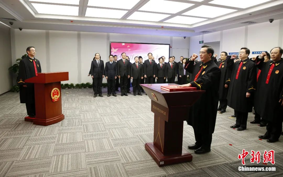 2019年1月1日,中國最高人民法院知識產(chǎn)權法庭在北京揭牌成立,最高法知識產(chǎn)權法庭全體法官進行憲法宣誓。李慧思 攝