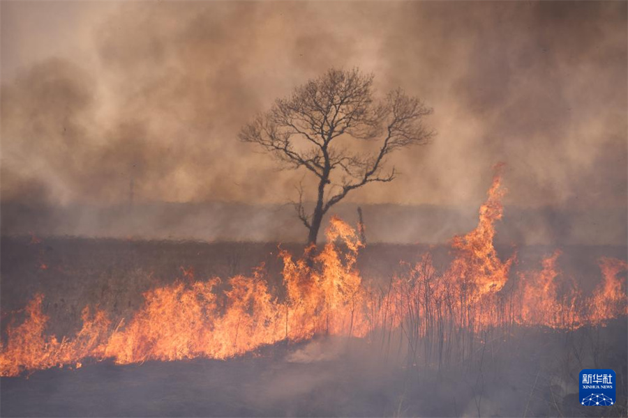 這是3月5日在俄羅斯濱海邊疆區(qū)南部拍攝的野火現(xiàn)場(chǎng)。新華社發(fā)(郭飛洲攝)