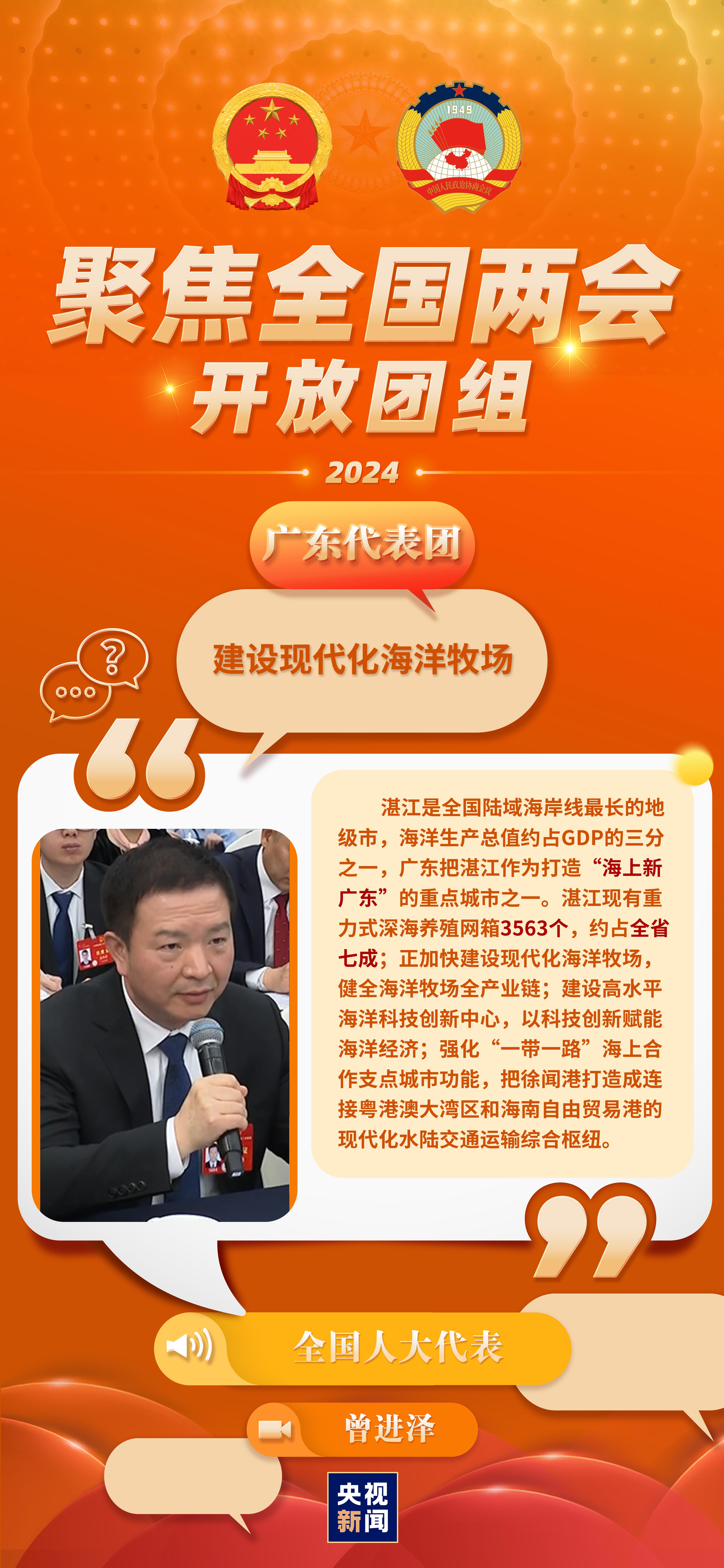 今天(3月7日)上午,廣東代表團舉行了開放團組活動。代表們就制造業(yè)高質(zhì)量發(fā)展、區(qū)域協(xié)調(diào)發(fā)展與鄉(xiāng)村振興、高水平對外開放、海洋經(jīng)濟等熱點話題進行了發(fā)言。