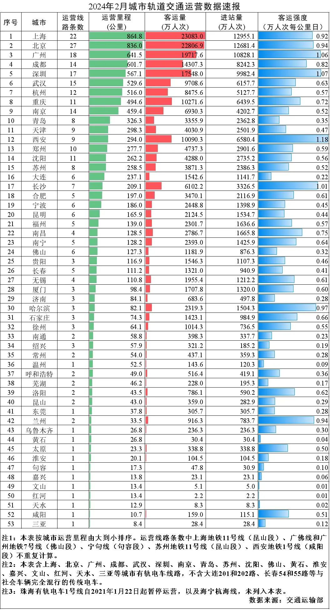 其中,地鐵、輕軌、市域快速軌道等大運量線路共267條,運營里程9499.8公里,完成客運量20.1億人次,進站量12.1億人次;單軌、磁浮等中運量線路共7條,運營里程202.5公里,完成客運量3175萬人次,進站量2304萬人次;有軌電車、自動導向軌道等低運量線路共34條,運營里程503.3公里,完成客運量888萬人次,進站量851萬人次。(中新財經(jīng))