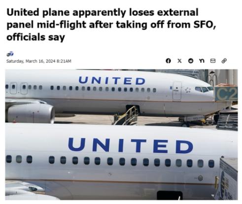 3月,美聯(lián)航波音客機(jī)又出現(xiàn)了包括引擎起火、輪胎脫落、滑出跑道在內(nèi)的多起事故。