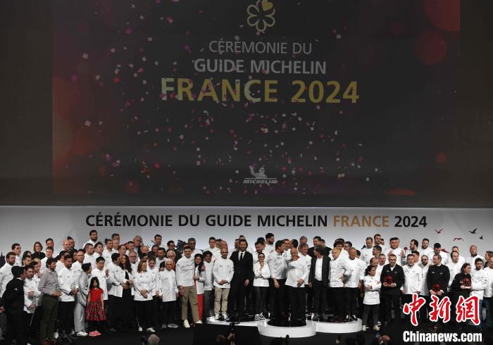 當(dāng)?shù)貢r(shí)間3月18日,2024年《米其林指南》法國版在法國中部城市圖爾出爐。2024年法國版指南新增62家星級(jí)餐館,這些餐館的經(jīng)營者在當(dāng)天舉行的儀式上集體合影。中新社記者 李洋 攝