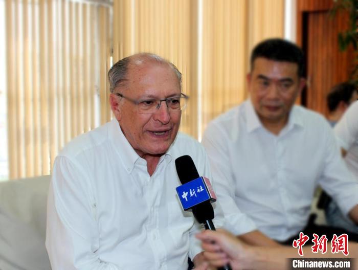當(dāng)?shù)貢r間3月16日,巴西圣保羅,巴西副總統(tǒng)兼發(fā)展、工業(yè)與貿(mào)易部長阿爾克明接受中新社記者專訪。 林簡 攝