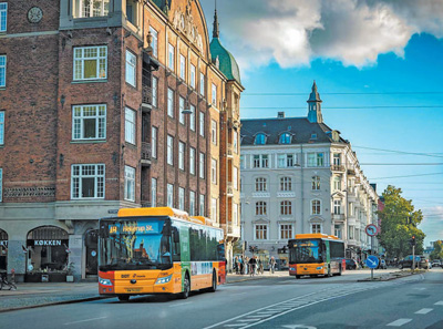 近年來(lái),越來(lái)越多的中國(guó)品牌純電動(dòng)大巴出口海外,為當(dāng)?shù)孛癖妿?lái)綠色出行體驗(yàn),助力公共交通綠色轉(zhuǎn)型。圖為中國(guó)宇通純電動(dòng)大巴行駛在丹麥?zhǔn)锥几绫竟诸^。