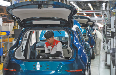 今年1月,中國(guó)車(chē)企長(zhǎng)城汽車(chē)旗下電動(dòng)汽車(chē)歐拉好貓?jiān)谔﹪?guó)羅勇新能源汽車(chē)制造基地正式下線,成為泰國(guó)首款本土量產(chǎn)的純電車(chē)型,將加速泰國(guó)汽車(chē)行業(yè)電氣化轉(zhuǎn)型。圖為該制造基地的生產(chǎn)車(chē)間內(nèi),工人在進(jìn)行汽車(chē)裝配作業(yè)。