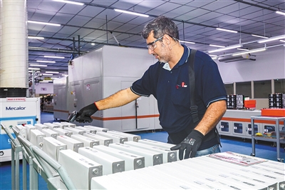 位于巴西亞馬孫州首府馬瑙斯的比亞迪電池工廠主要生產(chǎn)磷酸鐵鋰電池模組,為巴西的電動(dòng)大巴提供可靠的新能源動(dòng)力,推動(dòng)了當(dāng)?shù)乜沙掷m(xù)能源產(chǎn)業(yè)的發(fā)展,為減少碳排放和環(huán)境保護(hù)作出了貢獻(xiàn)。圖為當(dāng)?shù)貑T工正在掃描電芯條碼。