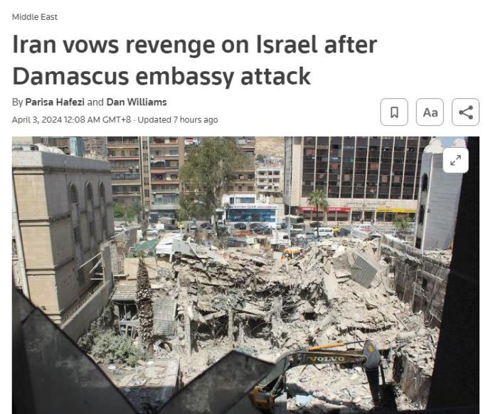 據(jù)此前報道,伊朗伊斯蘭革命衛(wèi)隊當?shù)貢r間1日表示,伊朗駐敘利亞大使館領(lǐng)事部門建筑遭以色列襲擊,造成包括高級將領(lǐng)在內(nèi)的多名成員死亡。