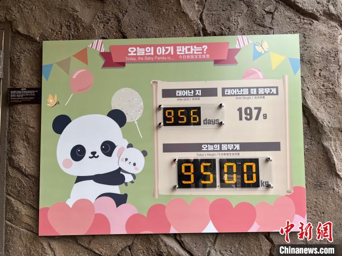 資料圖:愛寶樂園熊貓世界內(nèi)展示“福寶”當(dāng)日體重的信息牌。中新網(wǎng)記者 劉旭 攝