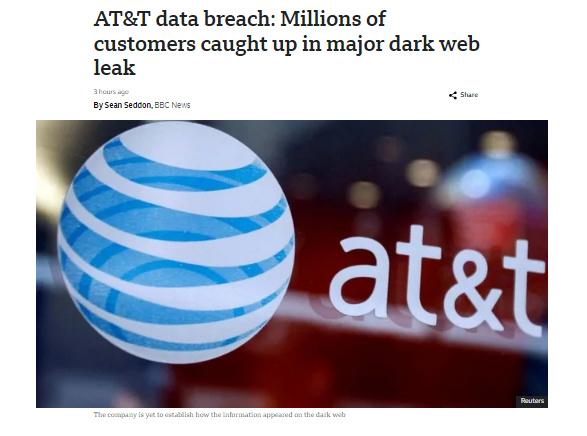 中新網(wǎng)3月31日電 據(jù)英國廣播公司(BBC)當(dāng)?shù)貢r間31日報道,美國電信巨頭公司AT&T宣布,正在調(diào)查一起持續(xù)多周的數(shù)據(jù)泄露事件,該事件涉及該公司數(shù)千萬客戶的數(shù)據(jù)被發(fā)布到暗網(wǎng)上。