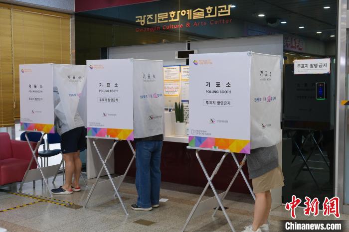 中新社記者當(dāng)天上午在首爾市廣津區(qū)一處投票站看到,選民陸續(xù)來到投票站,在完成現(xiàn)場登記并領(lǐng)取選票后,有序進(jìn)入寫票所內(nèi)投票。