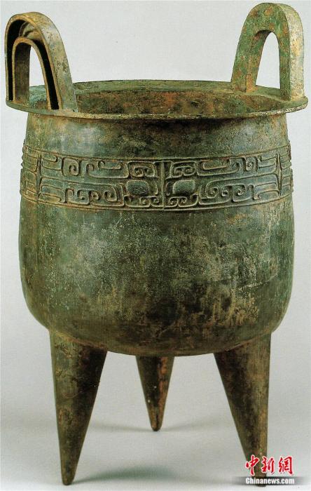 盤(pán)龍城遺址出土的青銅大圓鼎。盤(pán)龍城遺址博物院供圖