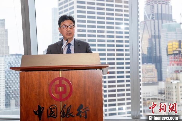 當?shù)貢r間4月10日,以“經(jīng)濟合作與文化傳承的雅致之約”為主題的“甘肅雅集”推介活動在美國紐約曼哈頓舉行。圖為甘肅省委常委、副省長張錦剛致辭?! ≈行律缬浾?廖攀 攝