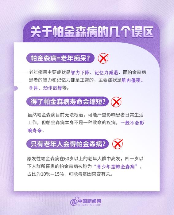 中新網(wǎng)4月11日電 帕金森病是威脅老年人健康的“沉默殺手”。帕金森病=老年癡呆?得了帕金森病壽命會縮短?只有老年人會得帕金森???今天是世界帕金森病日,這些有關(guān)帕金森病的小知識,一起了解!