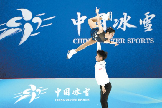 中國花樣滑冰運動員隋文靜和韓聰在訓(xùn)練中。本報記者 劉平攝