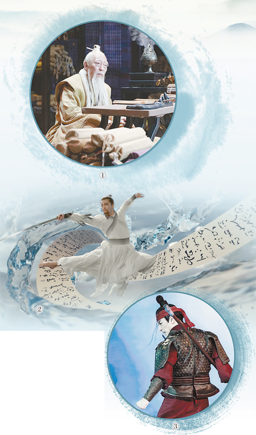 圖②:河南衛(wèi)視《重陽奇妙游》中舞蹈《逍遙》劇照。演員胡陽用舞蹈表現(xiàn)李白作詩。
